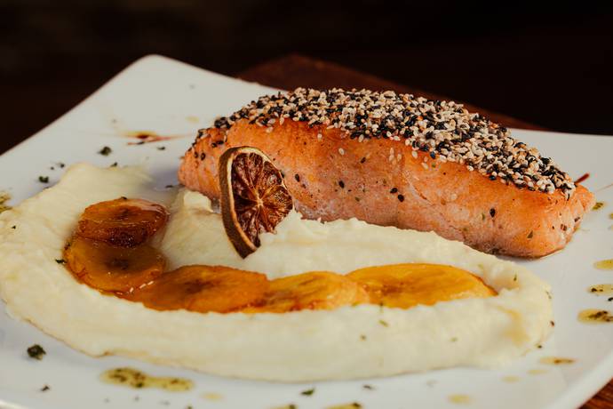 Na compra desse steak você tem direito a dois acompanhamentos .